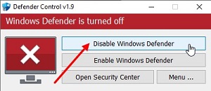 3. Для закрепления результата отключения защитников скачиваете программу Defender Control [Пароль от архива 777]. В работе я ей пользуюсь чаще всего. И нажмите кнопку Disable Windows Defender.