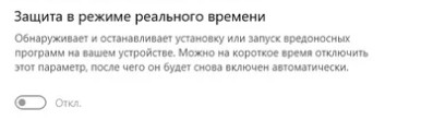 Выберите для параметра Защита в режиме реального времени значение Выкл / Откл.